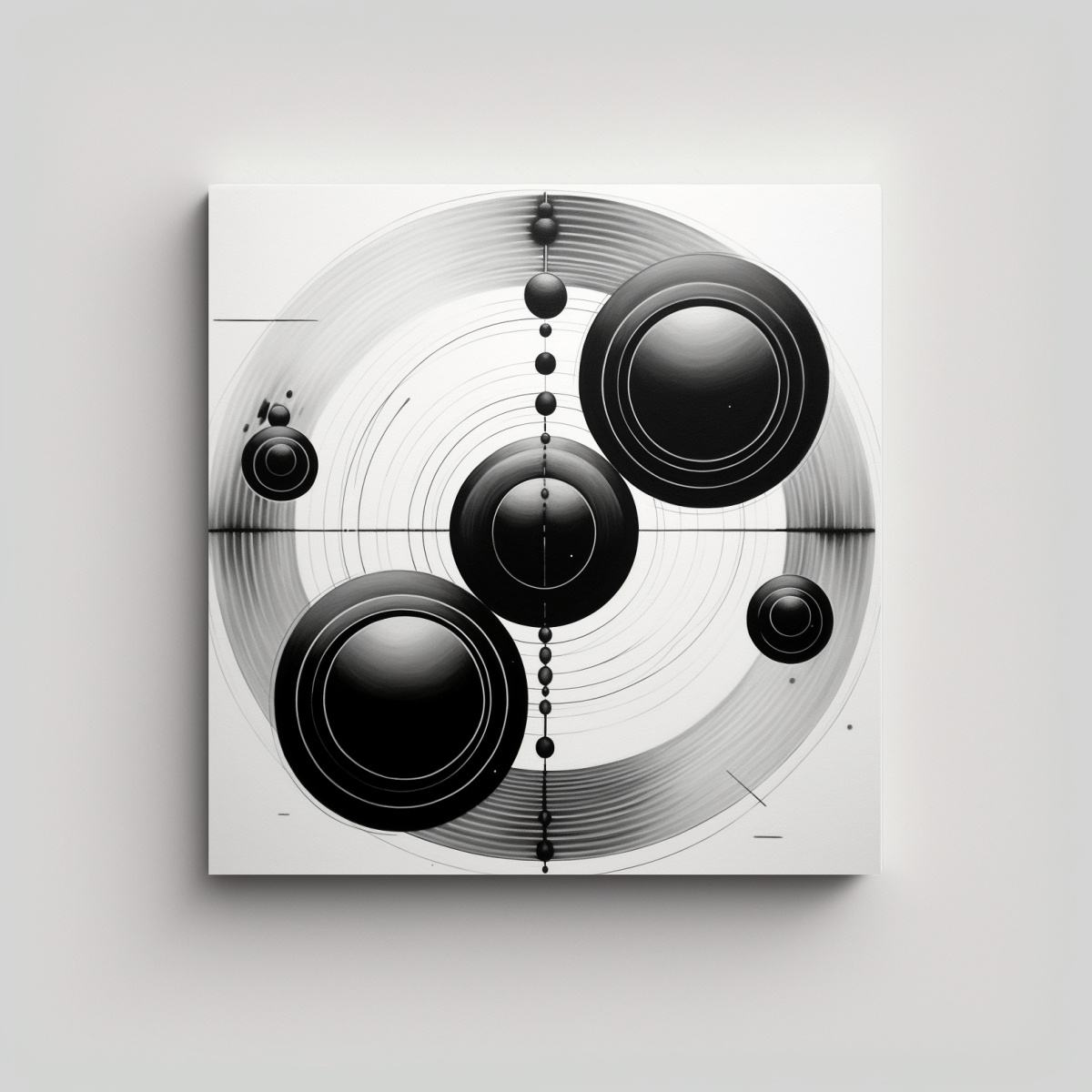 DecoCuadros te ofrece el cuadro decorativo perfecto para dar vida a tus espacios Los círculos de colores beige, negro, gris y plateado simbolizan el eco vibrante de tus recuerdos sonoros Nuestros cuadros impresos en tela de alta calidad y montados en bastidores de madera son la mejor opción para decorar tu hogar