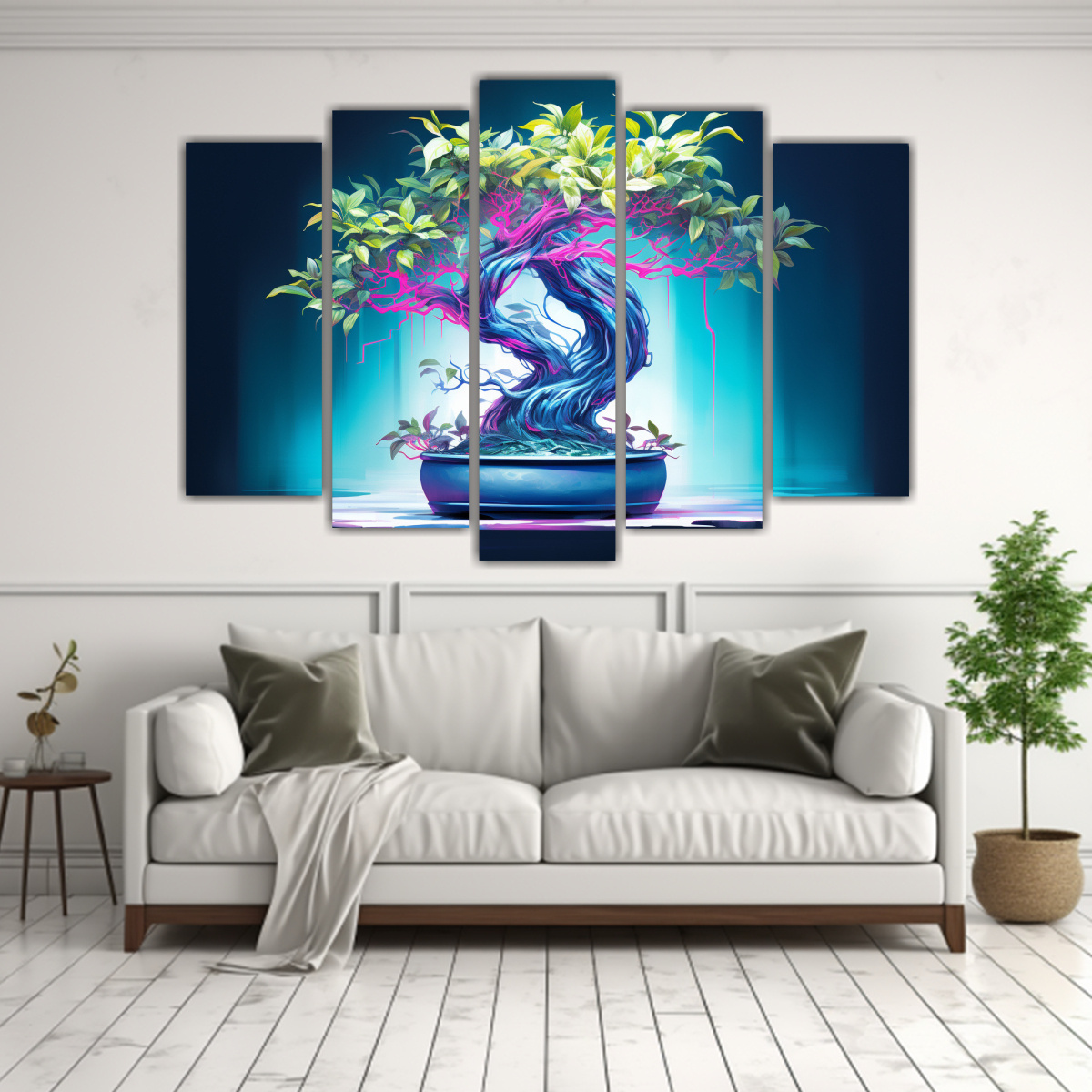 Pinturas Decorativas Intensas En Verde Y Azul Para Ambiente Neonoir