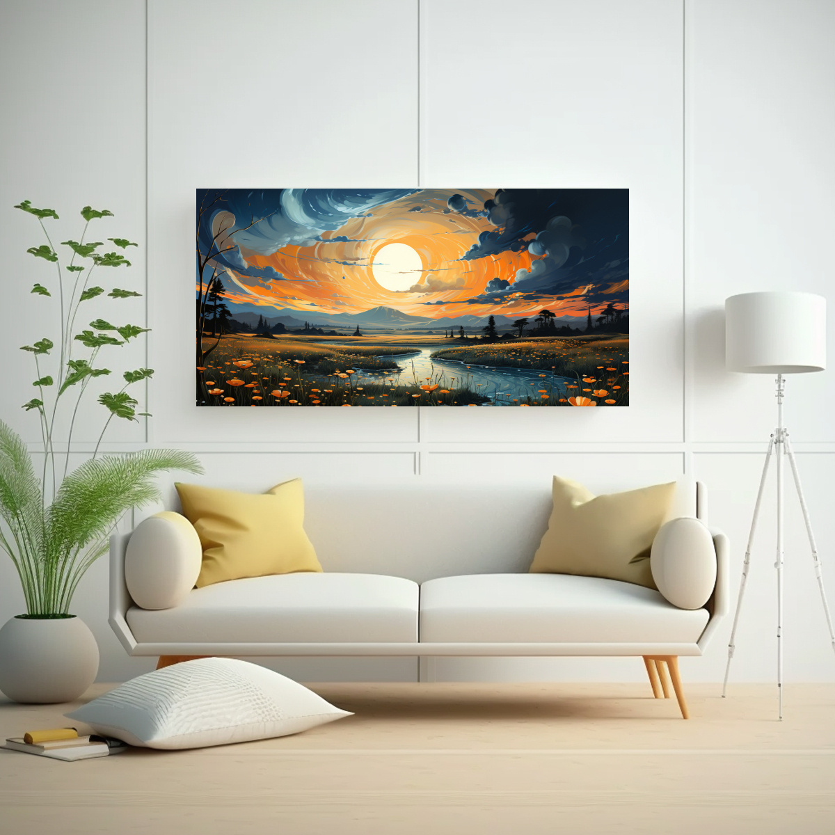 Pinturas Decorativas Intensidad Flores Amarillas En El Cielo Con Ma