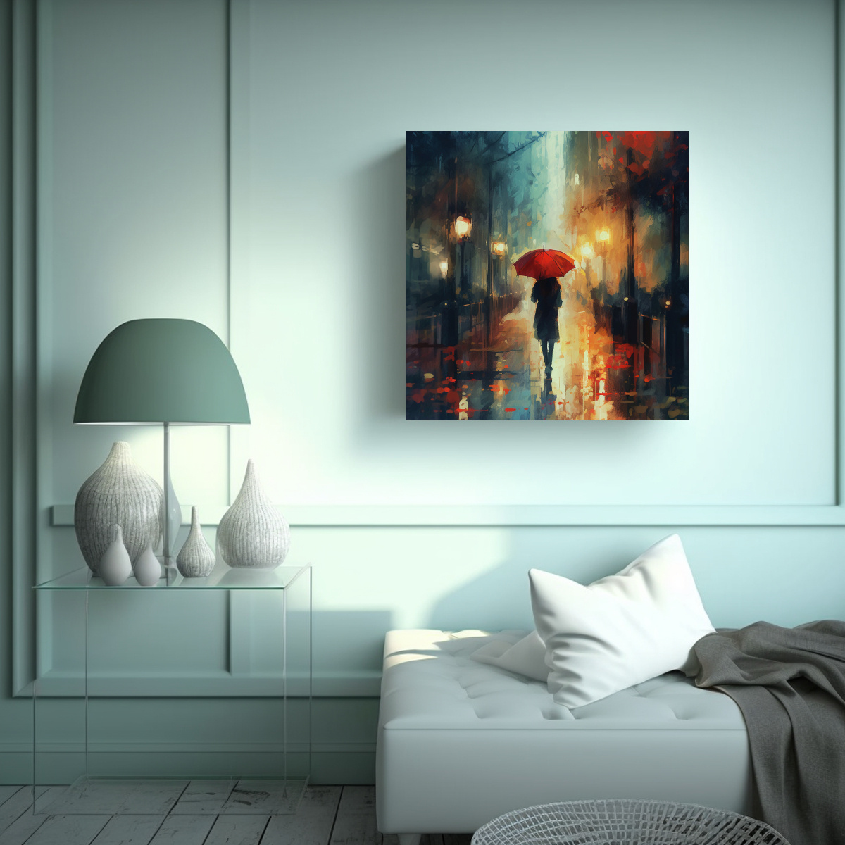 DecoCuadros ofrece pinturas decorativas de impresionismo abstracto cinematográfico con detalles de tema de composición Nuestros cuadros son de la mejor calidad y tienen precios económicos Tenemos diseños exclusivos y entregas rápidas y gratuitas en Santiago Añade un toque de elegancia a tus espacios con nuestro cuadro ‘Pinturas decorativas intrincadas de impresionismo abstracto cinematográfico con detalles de tema de composición – Un paraguas se sostiene’ en colores coral, azul marino grisáceo, chocolate, turquesa, gris, plateado, carmesí y menta