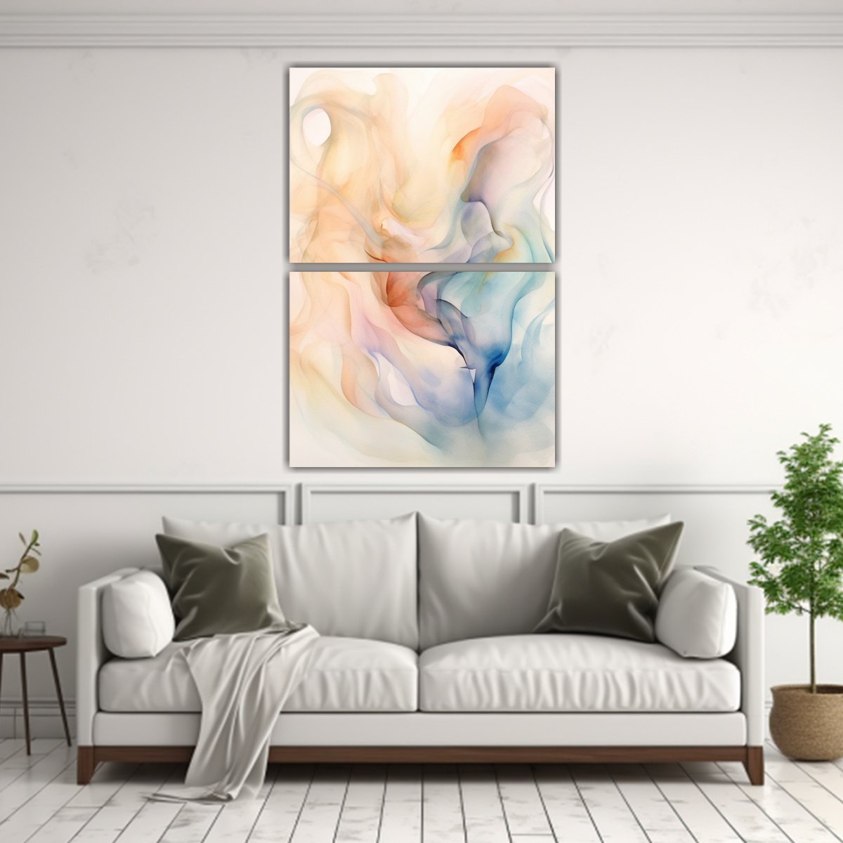 Pinturas Decorativas Juveniles De Dos Cuadros Con Movimiento Etéreo Y Abstracto En Acuarela, Colores Pálidos Y Suaves