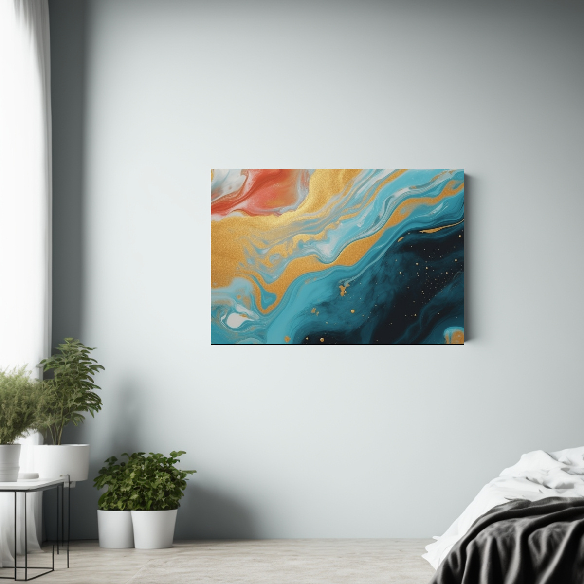 Este cuadro de Marbling contemporáneo en tonos vibrantes sería ideal para colocar en la sala de estar sobre un sofá de color neutro para resaltar su belleza También podría ser el centro de atención en un pasillo amplio o en la pared principal de tu comedor ¡Atrévete a darle vida a tus espacios con esta obra de arte!