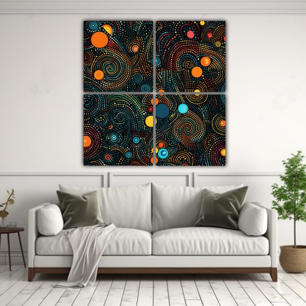 Pinturas Decorativas Minimalistas Con Pequeños Patrones Abstractos En Fondo Negro Sin Marca De Agua