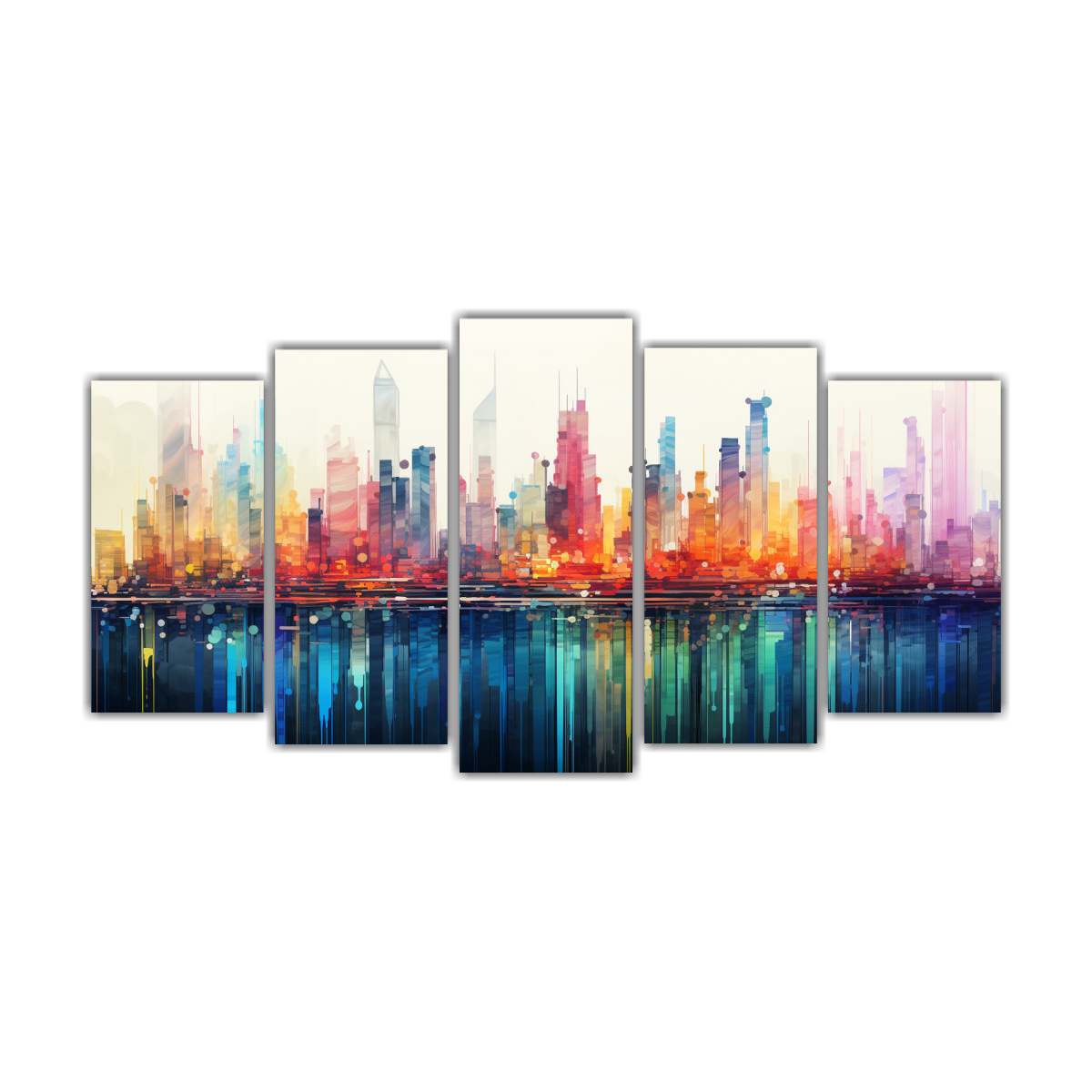 Pinturas Decorativas Mixtas De Esquema Glitch Art Con Vibrantes Horizontes Urbanos