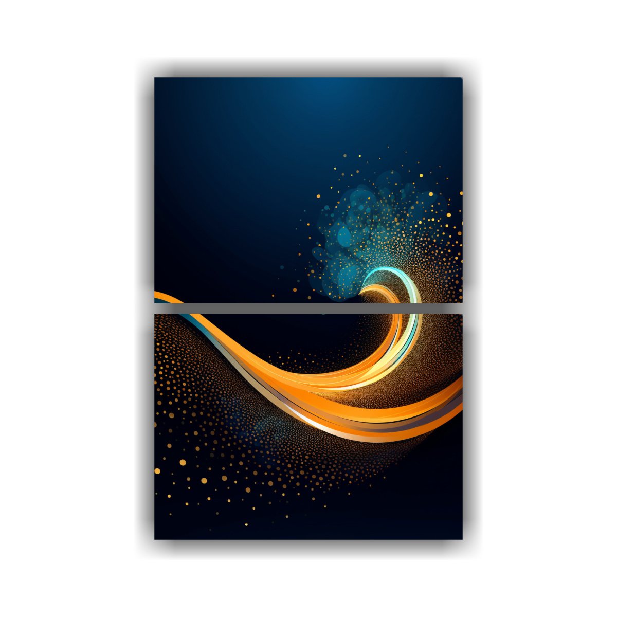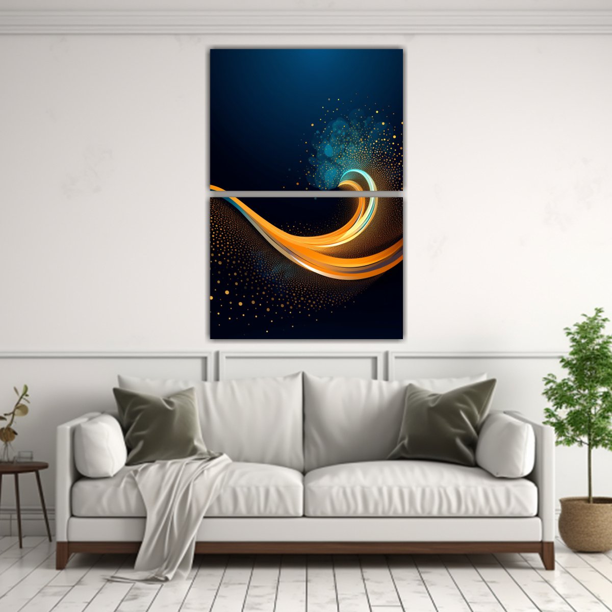 Pinturas Decorativas Modernas Con Fondo De Lienzo Azul Y Decoración Dorada De Líneas Doradas.