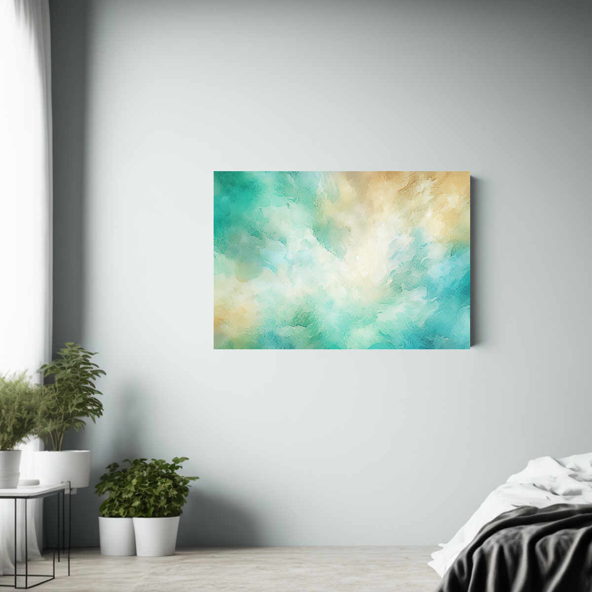 Coloca este cuadro en una pared blanca para resaltar la gama de colores y crear un ambiente fresco y relajante Combínalo con muebles en tonos neutros para lograr un espacio armonioso y moderno
