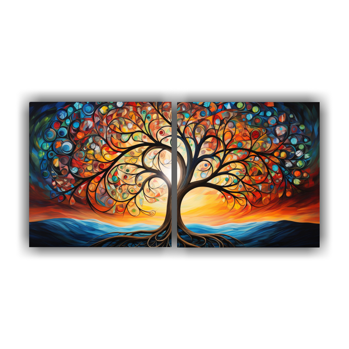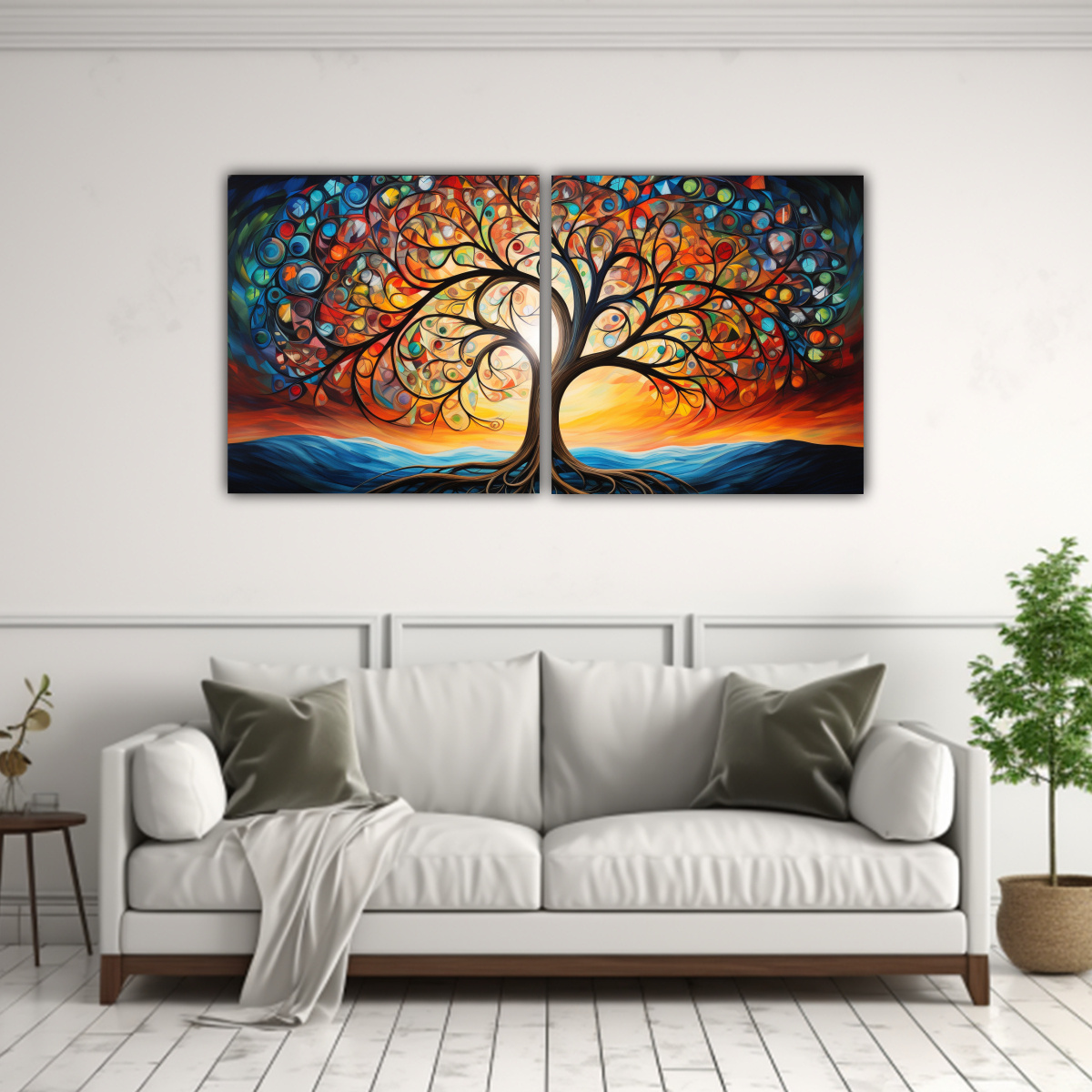 El cuadro multicolor de árbol abstracto en lienzo es una obra de arte única que le dará un toque moderno y vibrante a cualquier habitación Con colores como coral, azul marino grisáceo, turquesa, dorado, carmesí, verde azulado y beige, este cuadro es perfecto para añadir sofisticación y elegancia a tus espacios Decora tu hogar u oficina con nuestras pinturas decorativas de alta calidad Con nuestros diseños exclusivos, precios económicos y entrega rápida, DecoCuadros es tu mejor opción