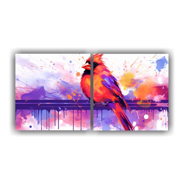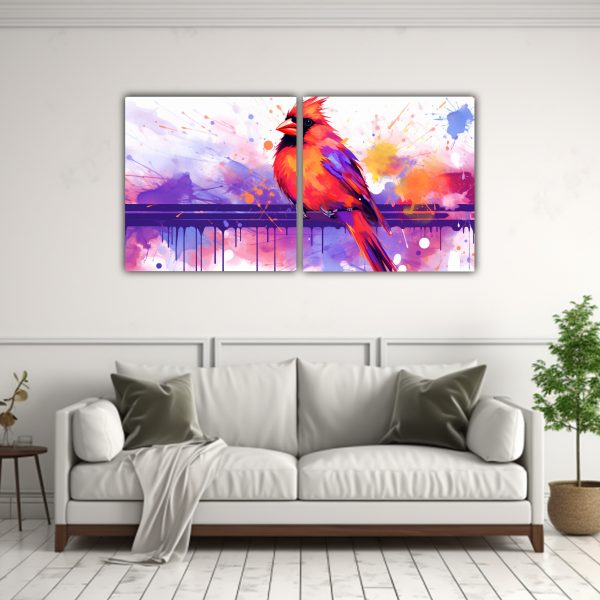 Pinturas Decorativas Neo Pop De Un Cardenal En Colores Morado Y Naranja