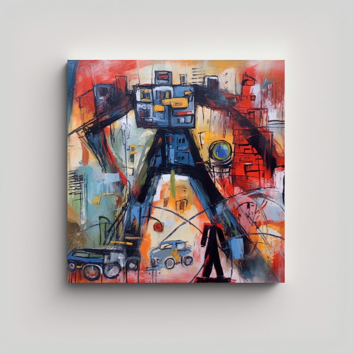 Pinturas Decorativas Neoexpresionistas Con Megápolis Al Fondo.