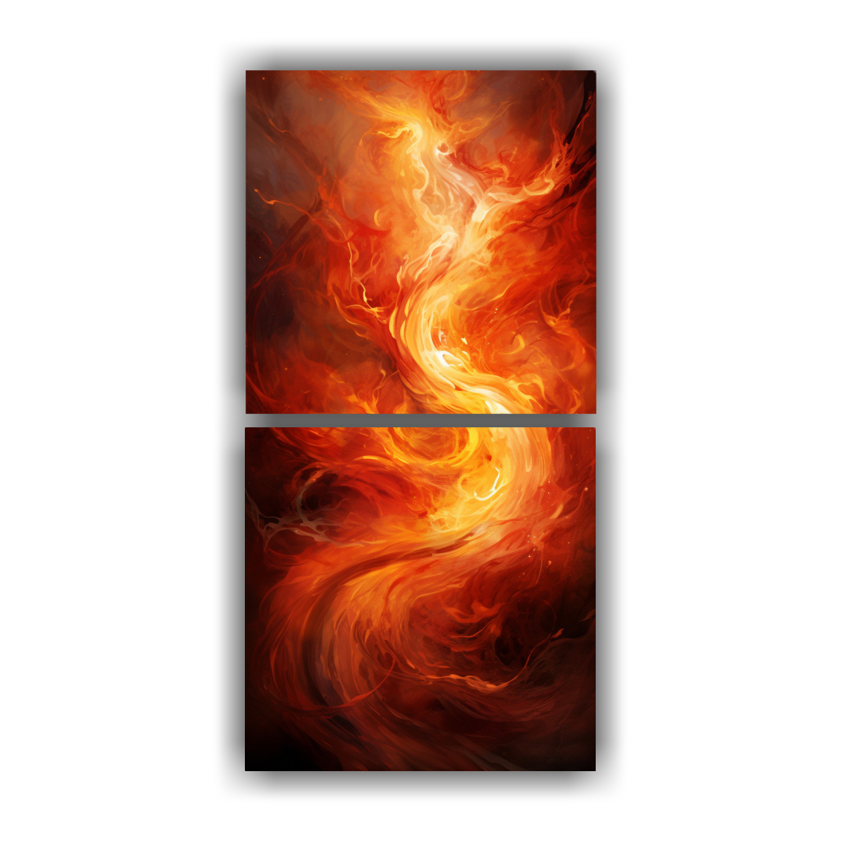 Pinturas Decorativas Originales: La Danza Abstracta De Las Llamas En Una Hoguera Expresa En Dos Cuadros