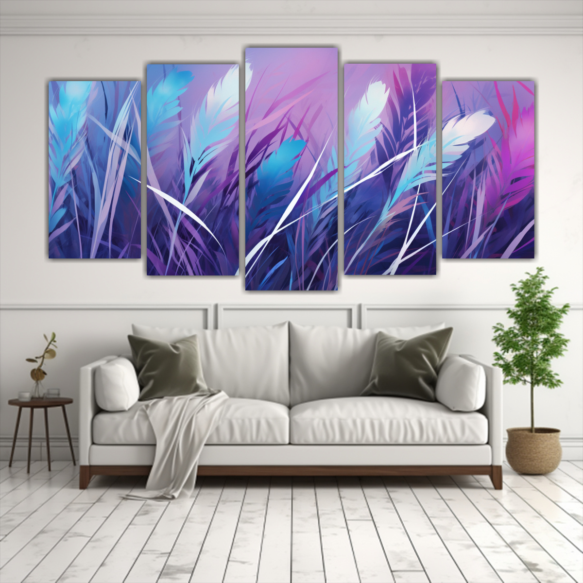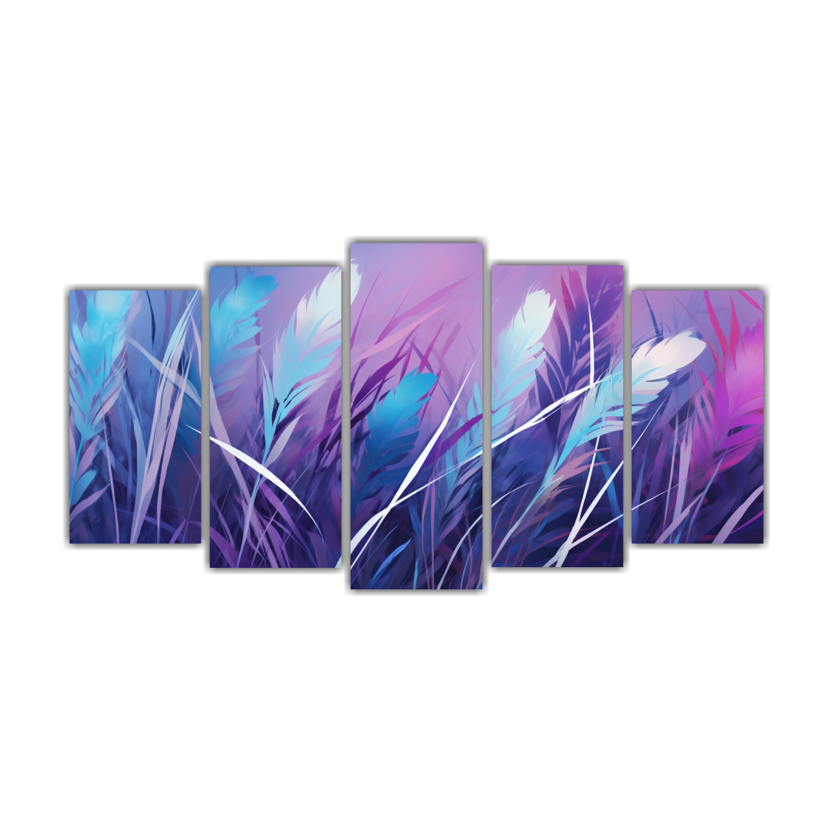 Pinturas Decorativas: Pampas Grass En Tonos Púrpura Y Azul, Atmósfera Neonoir.