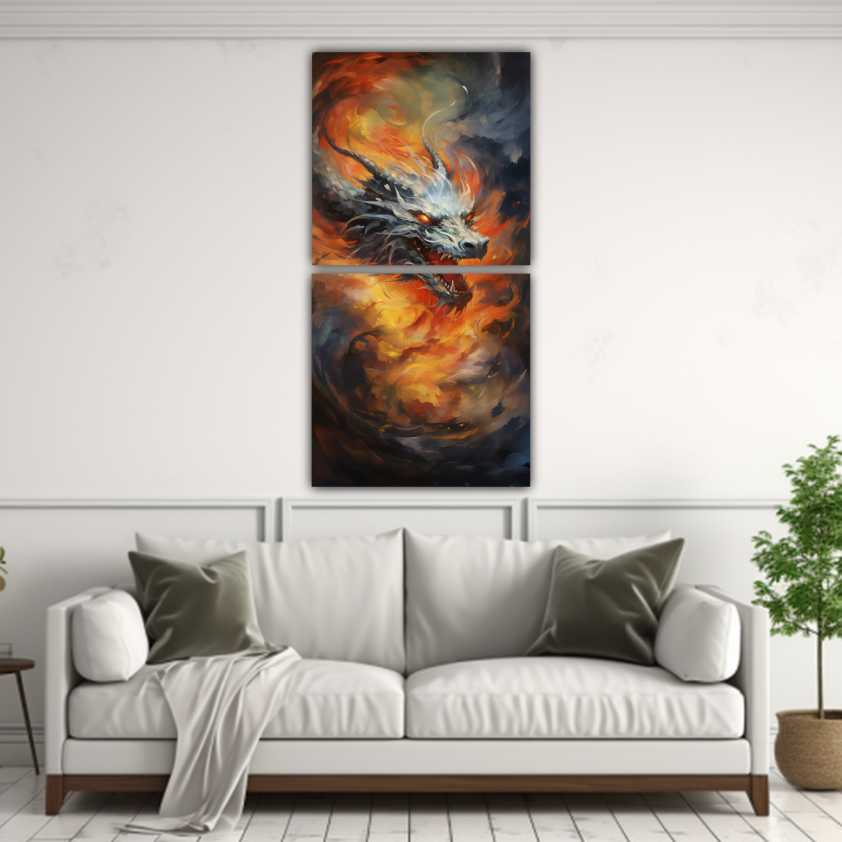 Pinturas Decorativas Para La Habitación: Danza Feroz Y Ardiente De Dragones En El Cielo.