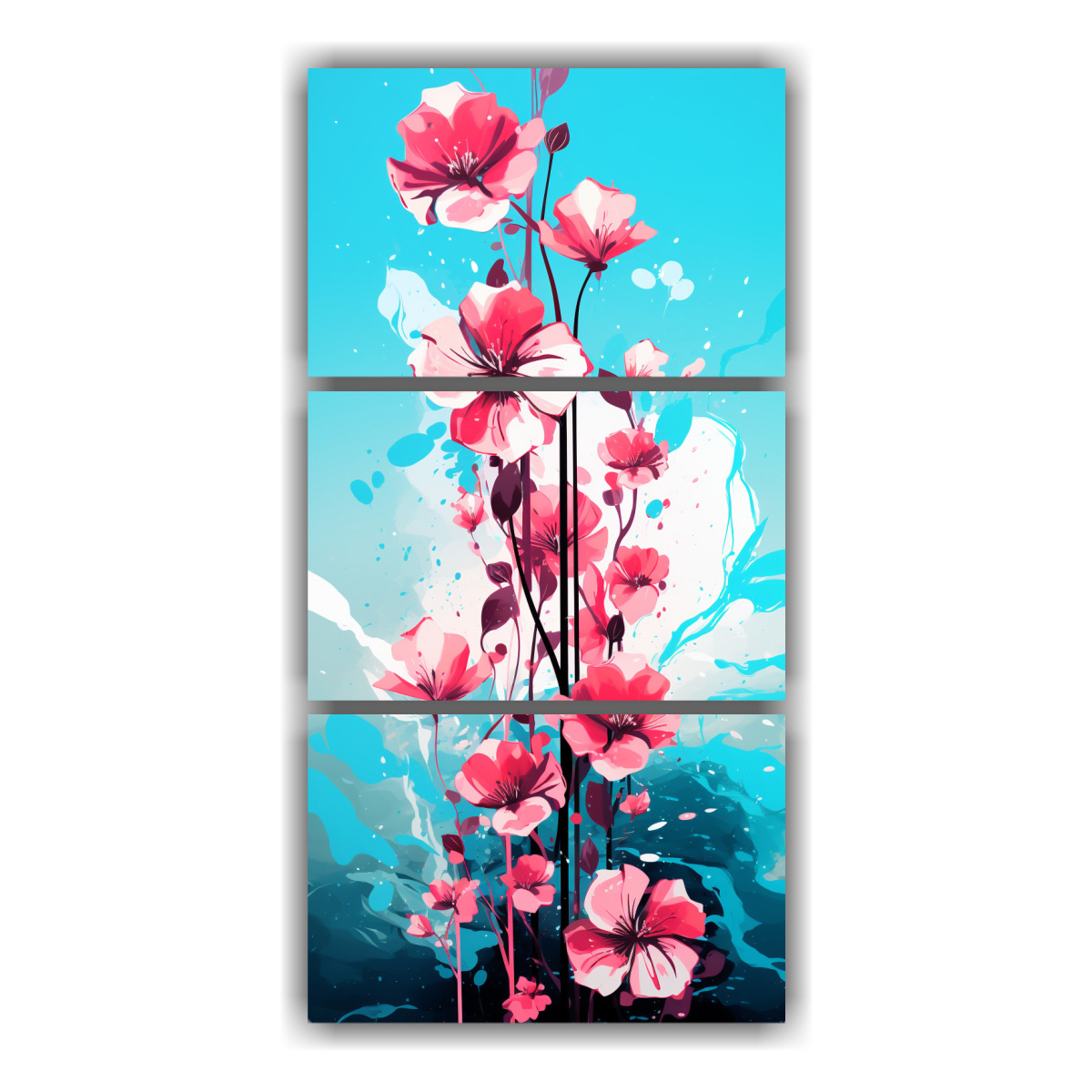 Este Set de 3 Cuadros en tonos Turquesa y Rosa es ideal para decorar un dormitorio o sala de estar de estilo moderno Colócalos juntos en una pared blanca para lograr un impacto visual llamativo y elegante Combínalos con muebles en tonos neutros para un contraste equilibrado