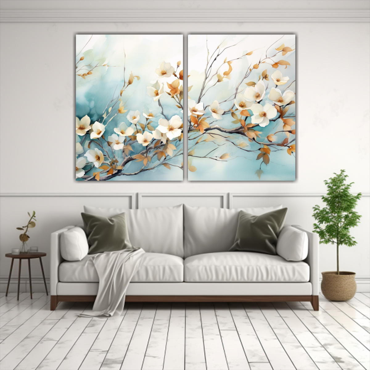Pinturas Decorativas Ramas De Flores De Cornejo Acuarela En Tonos Pastel.