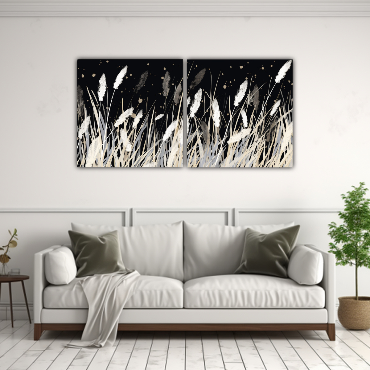 Pinturas Decorativas Rectangulares De Composiciones Conceptuales De Una Espadaña En Blanco Y Negro Con Atmósfera Neonoir