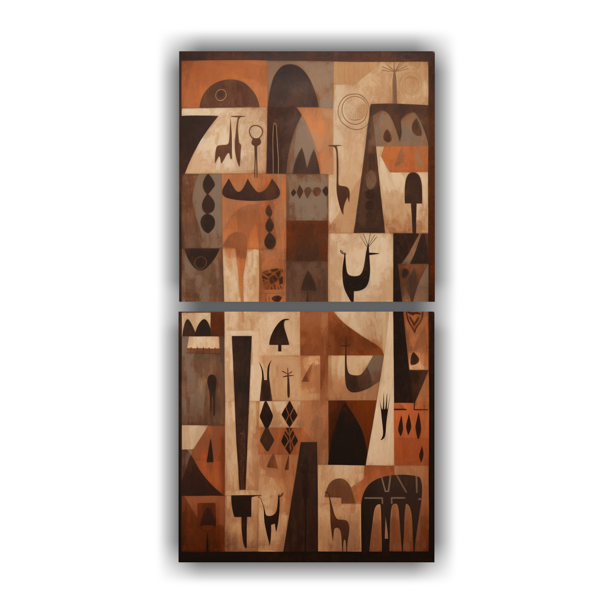 En DecoCuadros tenemos cuadros decorativos impresos en tela de alta calidad con bastidores de madera Nuestra colección de pinturas decorativas reinterpretación abstracta para modernidad de las cavernas antiguas combina los colores chocolate, plateado, coral, negro, azul marino grisaceo y gris para crear diseños exclusivos que se adaptan a tu estilo Con la mejor calidad del mercado y los precios más baratos, no encontrarás una opción mejor Además, ofrecemos entregas rápidas y gratuitas en Santiago y envíos express a regiones ¡Aprovecha esta oportunidad para darle un toque de elegancia a tus espacios!