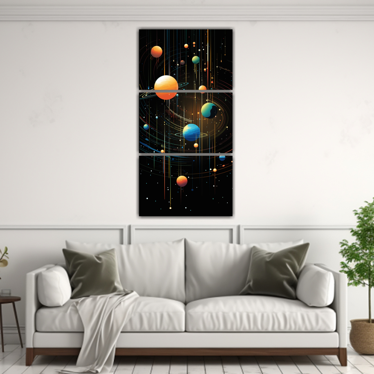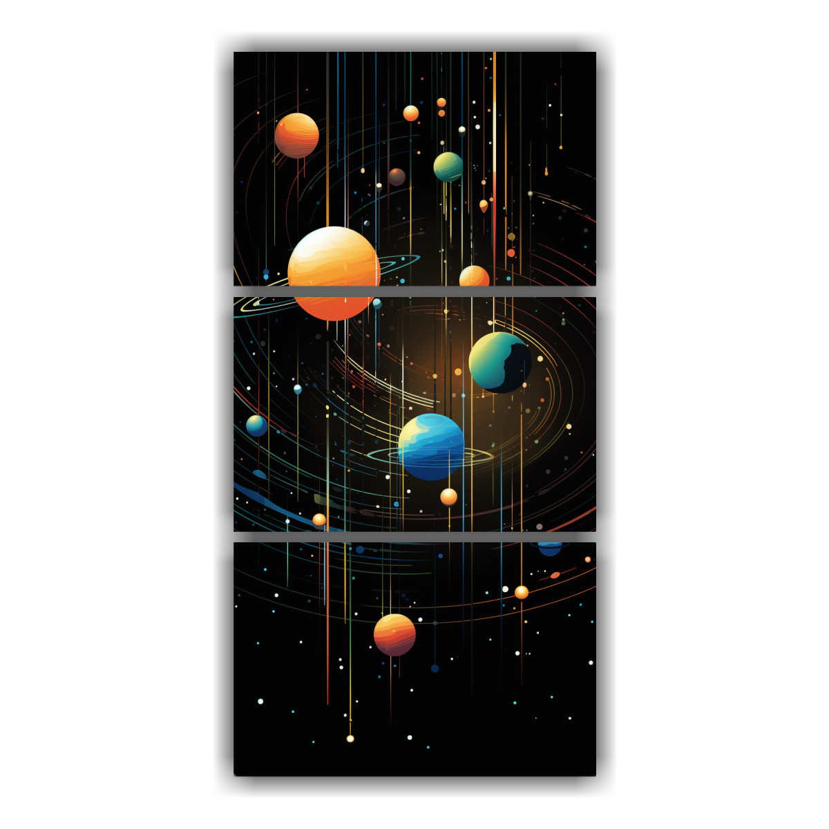 Pinturas Decorativas Representación Multicolor De Planetas En Set 3 Artes Calidos Unico