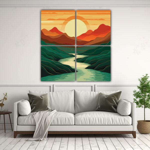 Este cuadro de combinación cautelosa de colores retro y modernos sería perfecto para darle vida a tu sala de estar Colócalo sobre un sofá en tonos neutros para crear un contraste llamativo Elige cojines y textiles en tonos coral, gris y amarillo claro para complementar el cuadro y crear una armonía visual en la habitación