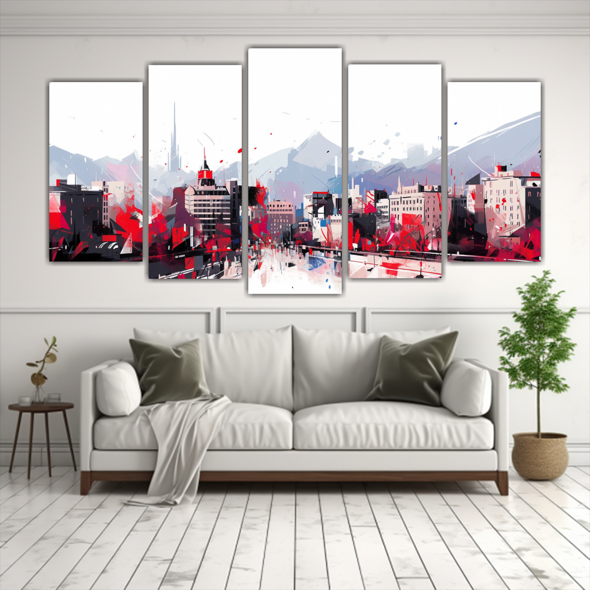 Sumérgete en la elegancia de las Cinco Composiciones Horizontal Clásico A Santiago City in Chile in White Colors Neo-noir atmos en tonos Carmesí, Azul Marino grisáceo, Plateado, Gris, Lila, Verde Azulado y Turquesa Decora con estilo y originalidad