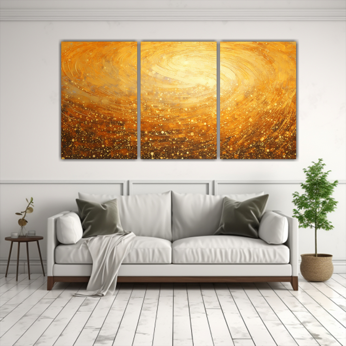 Coloca el Set 3 Artes Creativa Refinado en el estilo puntillismo luminoso hecho con líquidos en tu sala de estar para agregar un toque de elegancia y sofisticación Combina los colores Chocolate, Coral, Amarillo Claro y Dorado con muebles de tonos neutros y accesorios en tonos dorados para crear un ambiente cálido y acogedor También puedes colocar este cuadro en tu dormitorio para añadir un toque de color y estilo a tu espacio personal