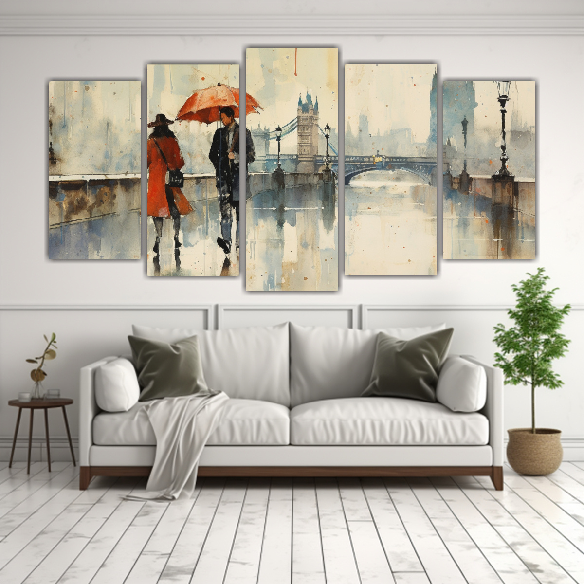 Pinturas Decorativas Set 5 Artes Hermoso Creatividad De Un Hombre Y Una Mujer Caminando Por El Puente De Londres