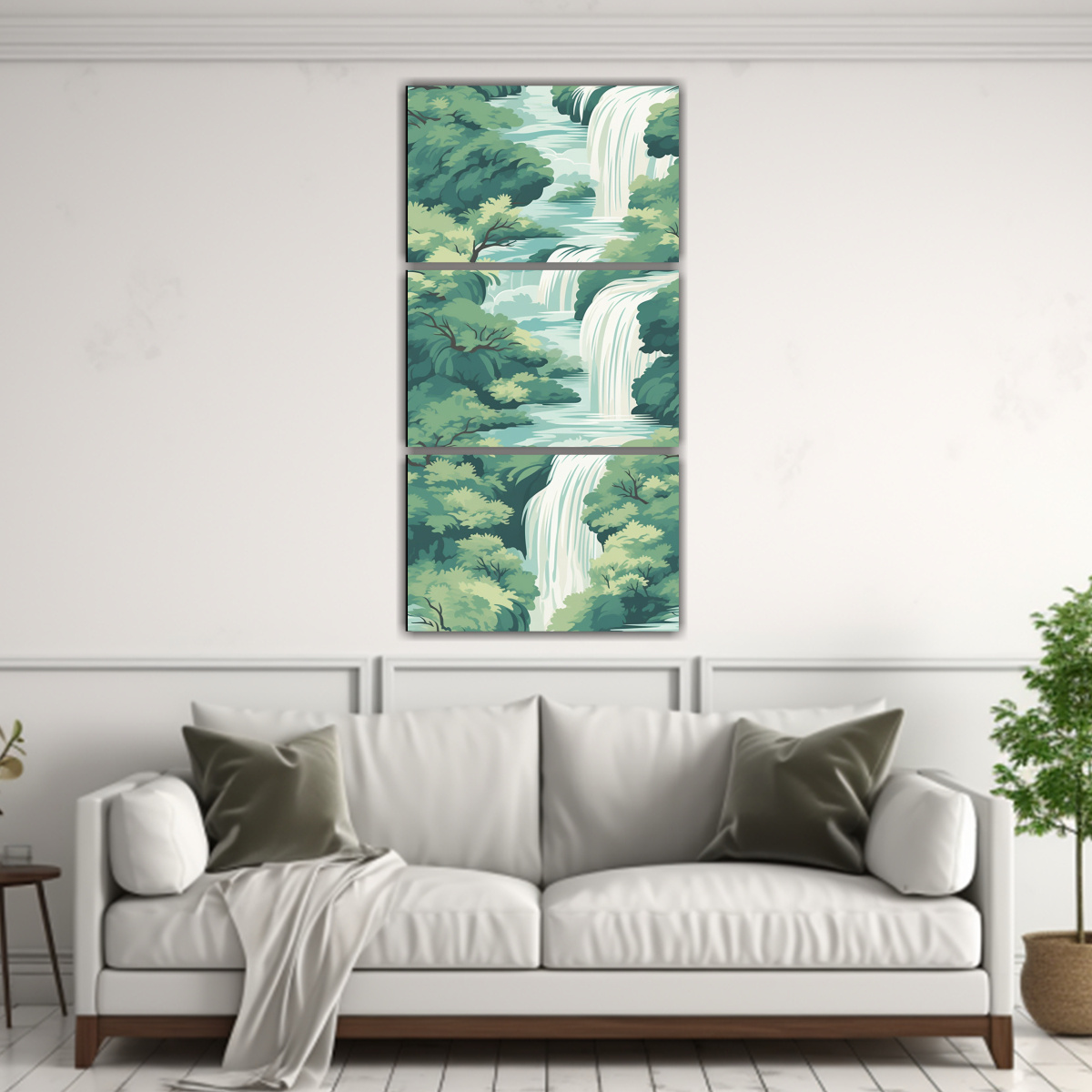 Este cuadro decorativo temática cascada calmante es ideal para colocar sobre un sofá en la sala de estar, creando un punto focal relajante en el espacio También puedes ubicarlo en la pared opuesta a una ventana para simular una vista natural y ampliar visualmente el espacio