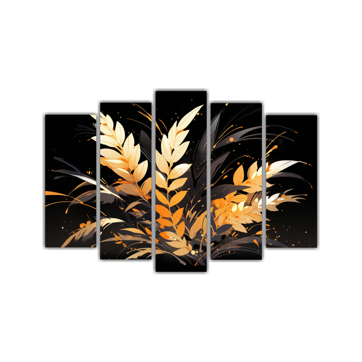 Pinturas Decorativas Temática De Artes Conceptuales Amarillas Y Doradas Con Atmósfera Neonoir.