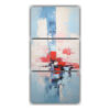 Añade un toque de vanguardia a tus espacios con el cuadro decorativo abstracto futurista de paisaje urbano de Tres Artes Sus colores plateado, gris, negro, dorado, carmesí, coral y azul marino grisáceo le dan un aspecto moderno y sofisticado que se adapta a cualquier estilo de decoración