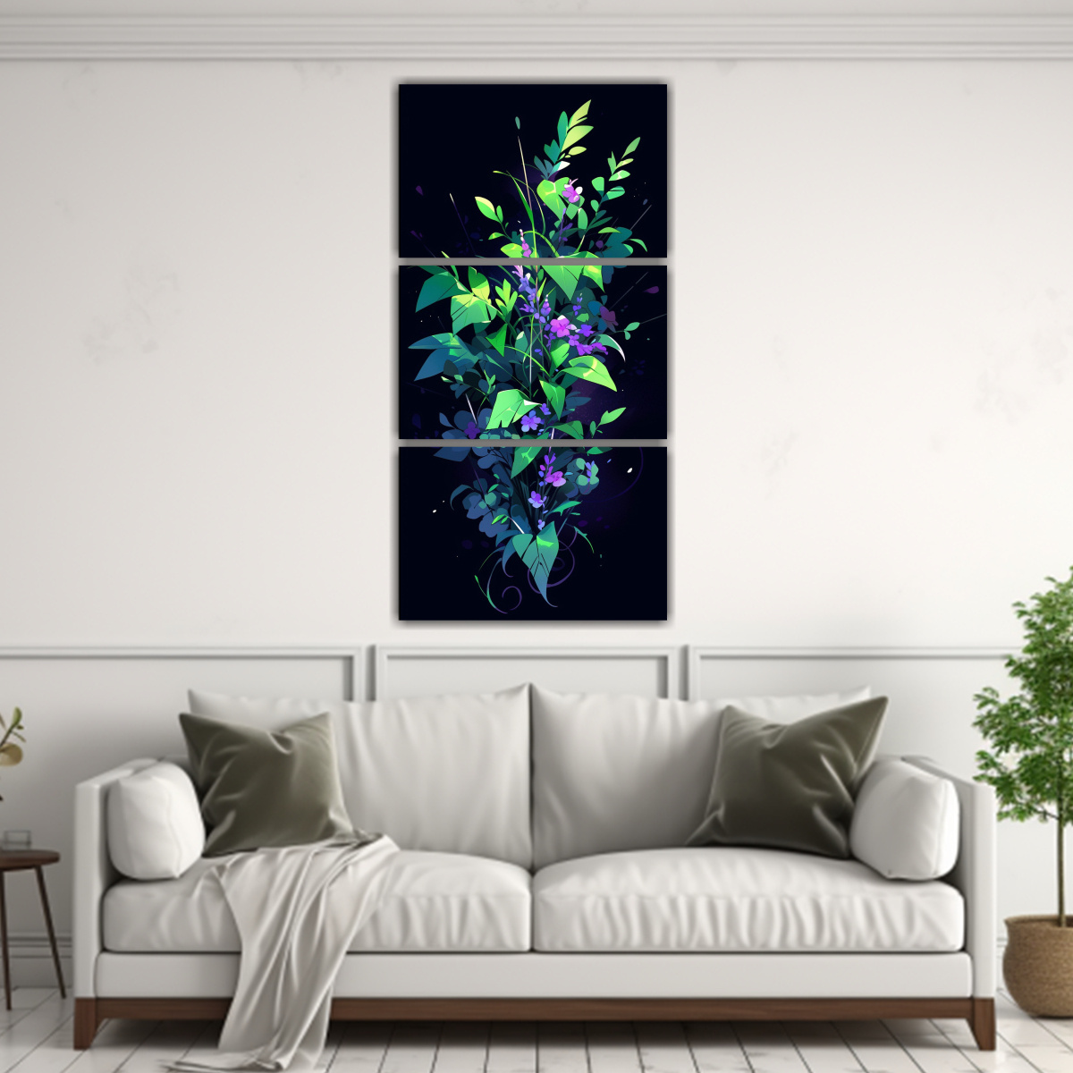 Este cuadro decorativo verde y morado con estilo neo-noir sería ideal para colocar en el salón, junto a muebles de tonos neutros o grises, creando un contraste elegante y moderno También podría ser el punto focal en un pasillo o en la pared frente a la mesa del comedor, añadiendo sofisticación y estilo a tu espacio