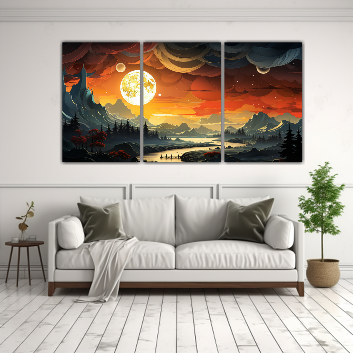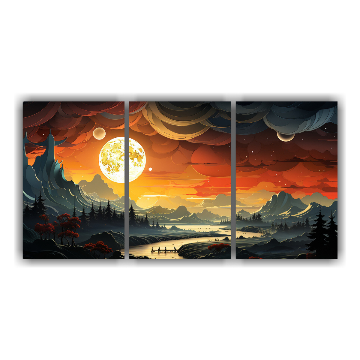 Pinturas Decorativas Vintage Estilo Plano Surrealista De Paisajes Abstractos En Pixel Art En Lienzo Dos Canvas