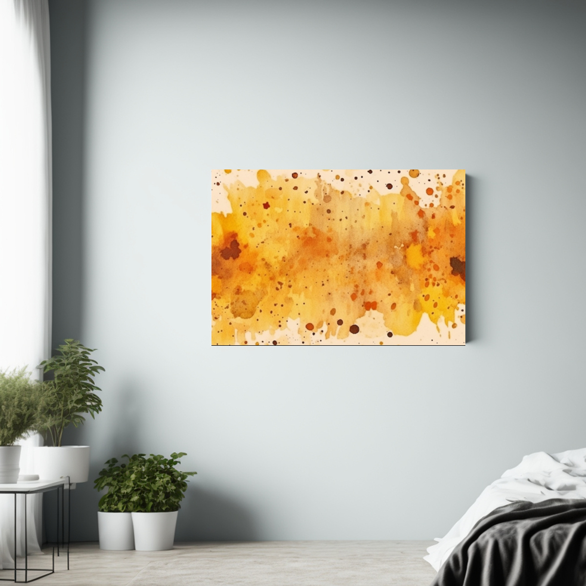 Este cuadro decorativo en tonos otoñales ocre amarillo es perfecto para darle calidez a tu sala de estar Colócalo sobre un sofá blanco para resaltar sus colores y crear un ambiente acogedor y elegante