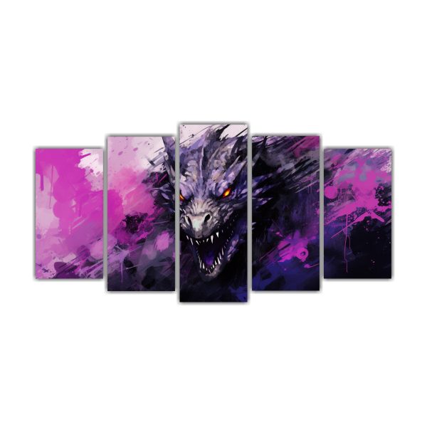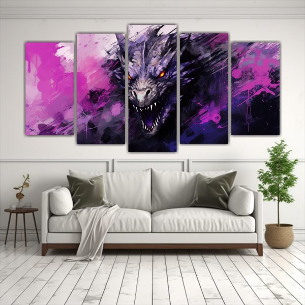 Pinturas En Bastidor Abstracción Expresiva: Dragón Púrpura Y Negro Neonoir.