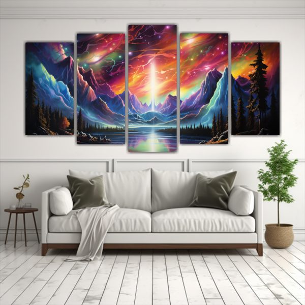 Pinturas En Bastidor: Cinco Telas Colores Calma Y Vibrantes Con Aurora Boreal