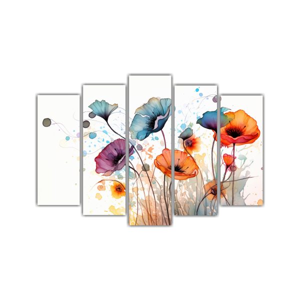 Este set de 5 telas en bastidor con colores Carmesí, Azul Marino grisáceo, Coral, Blanco, Gris, Plateado y Turquesa sería ideal para decorar un rincón de lectura o un espacio de trabajo en casa Combínalos con muebles en tonos neutros para resaltar la atmósfera neo-noir y la creatividad acuarela