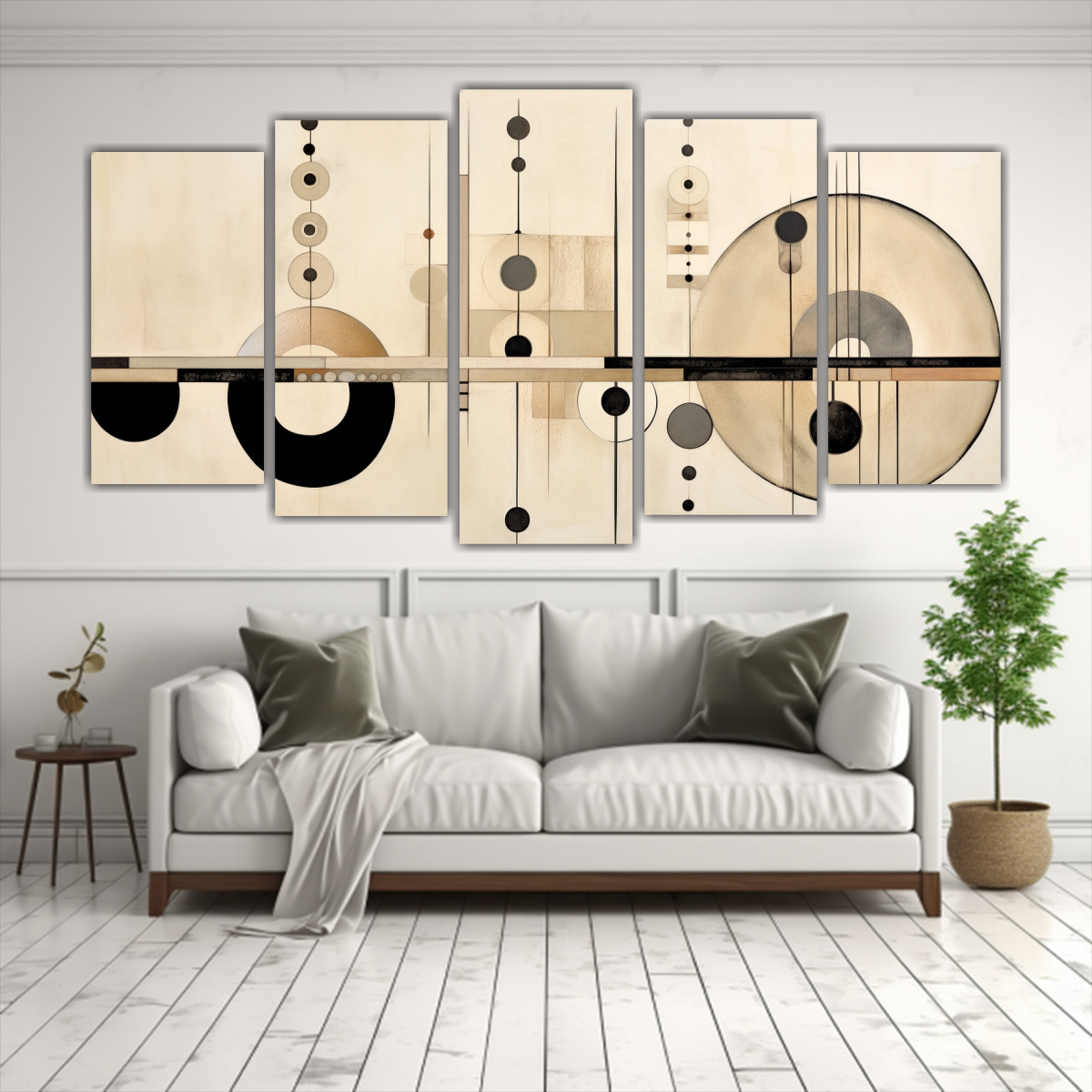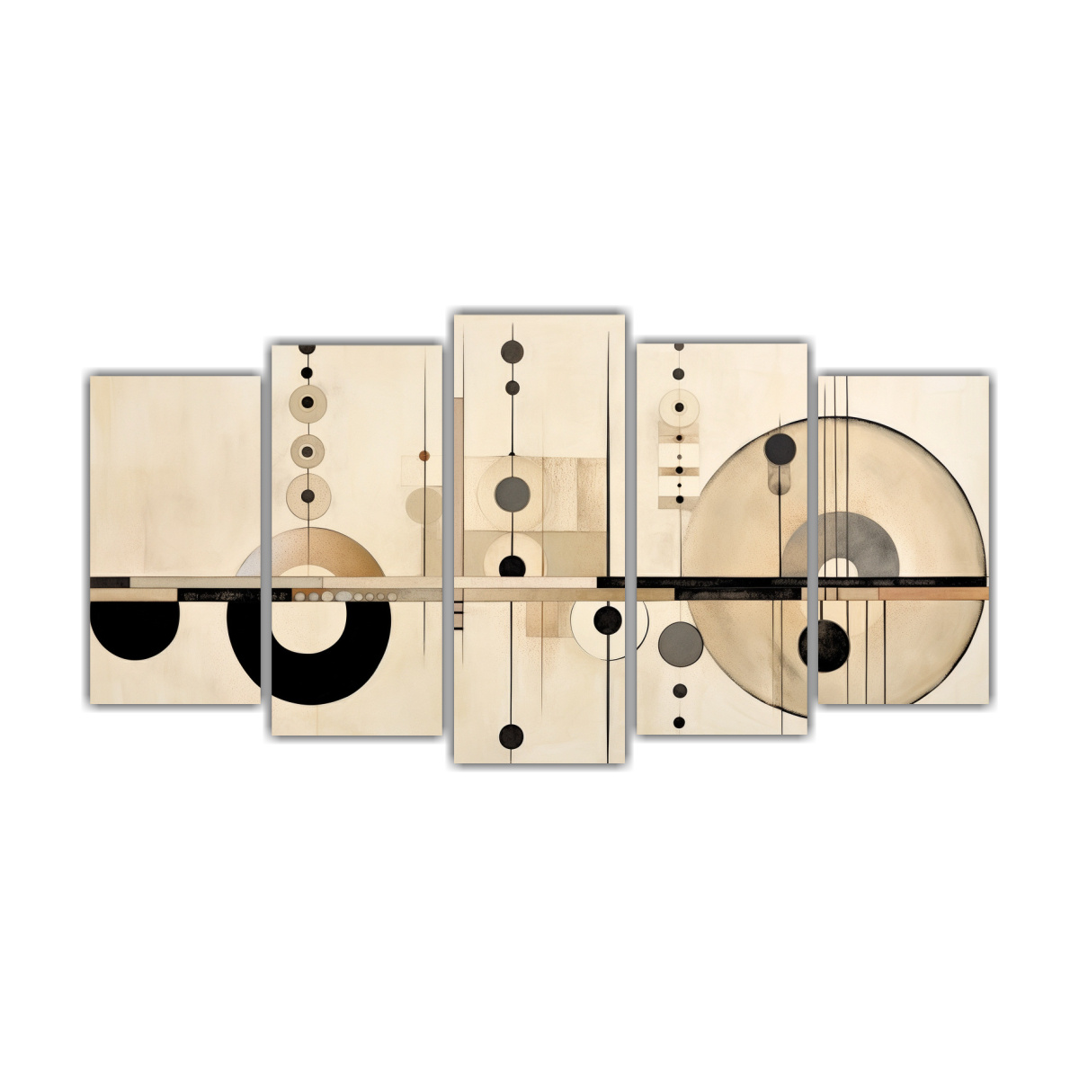 Pinturas En Bastidor De Decoración Creativa Boho Estilo Calmado Contemporáneo Con Círculos Y Líneas Beiges.