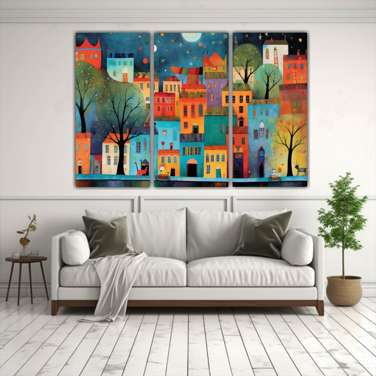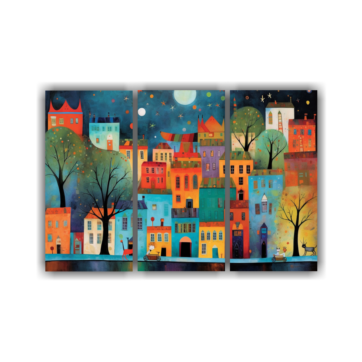 Pinturas En Bastidor De Estética Ciudad Encantadora Con Líneas Finas