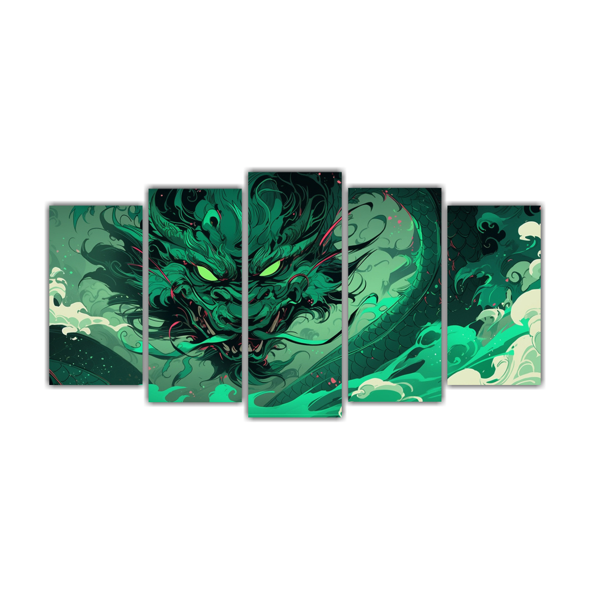 Pinturas En Bastidor Escena Dragón Verde Y Turquesa Estilo Neonoir