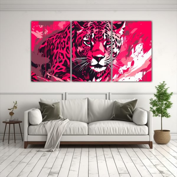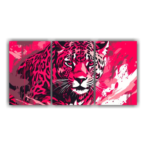 Pinturas En Bastidor Moderno Con Textura De Jaguar En Colores Rojo Y Rosa Neo Pop Art