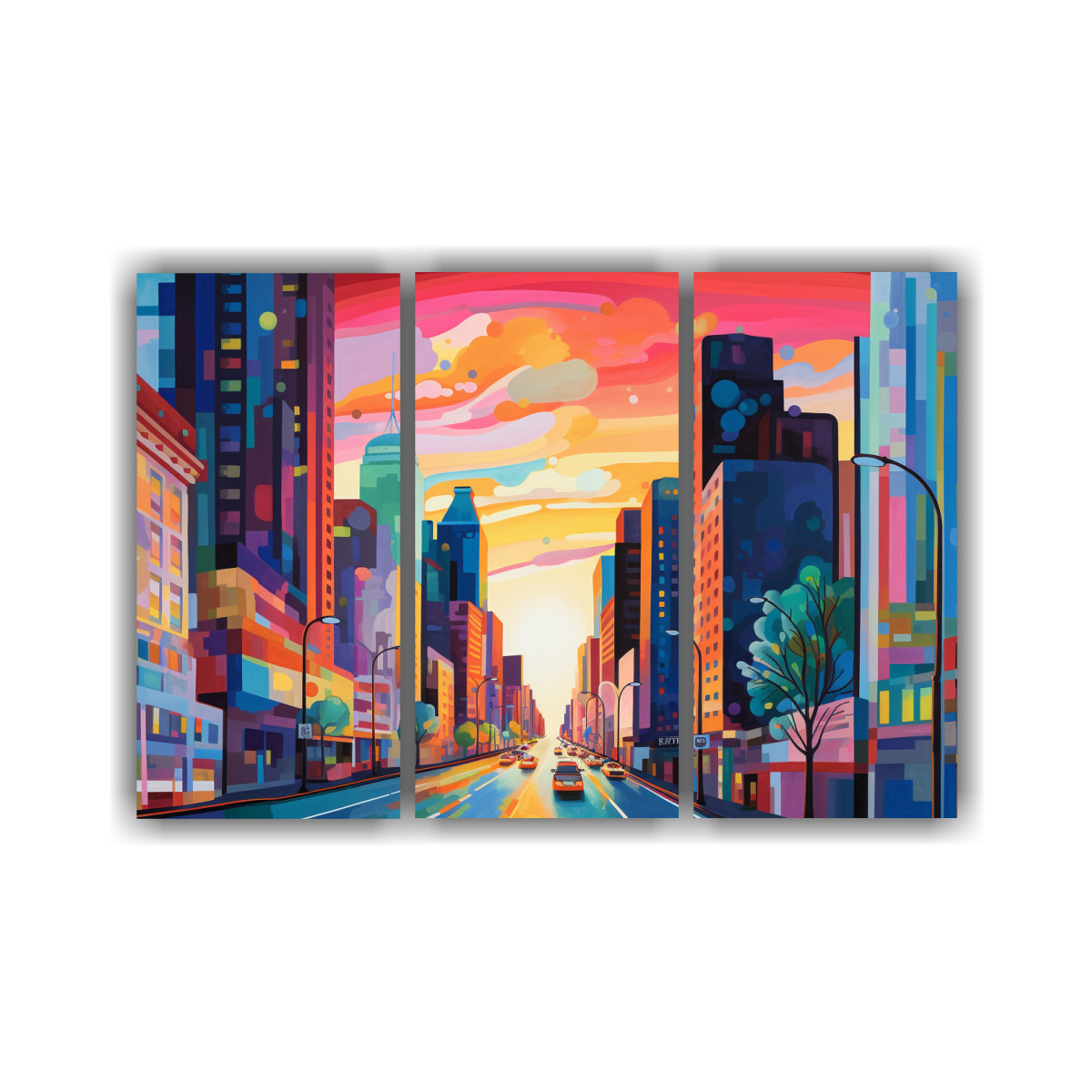 Este cuadro inspirado en la vida urbana es perfecto para la sala de estar o el estudio Colócalo sobre un sofá gris para resaltar los tonos azules y verdes, creando un ambiente moderno y acogedor Combínalo con cojines en tonos neutros para un look contemporáneo