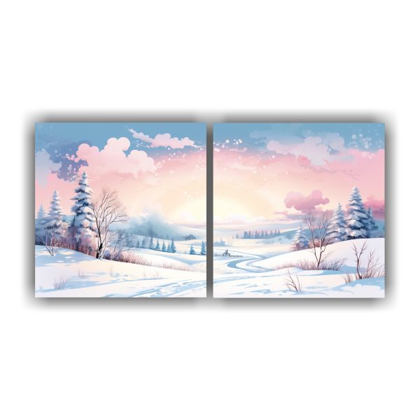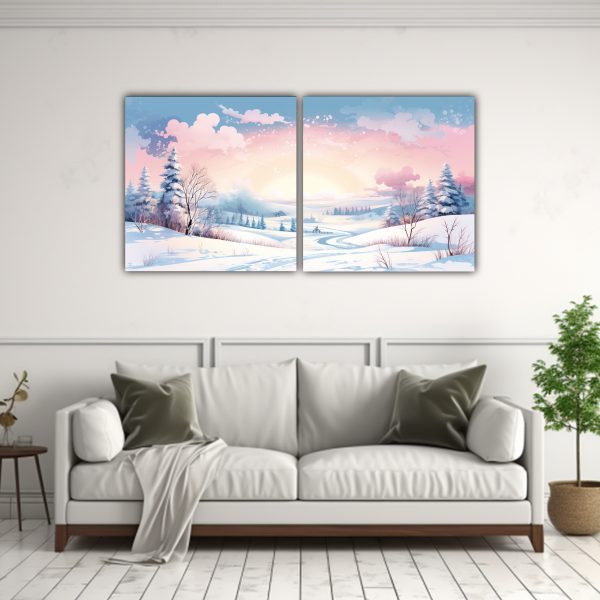Pinturas En Bastidor Vanguardistas Para Oficina Con Paisaje Invernal En Tonos Pastel