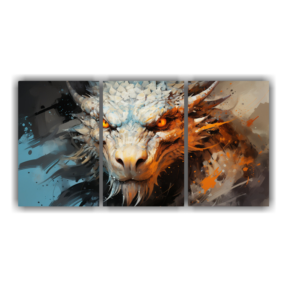 Pinturas En Lienzo De Dragón Blanco Y Naranja Neonoir.