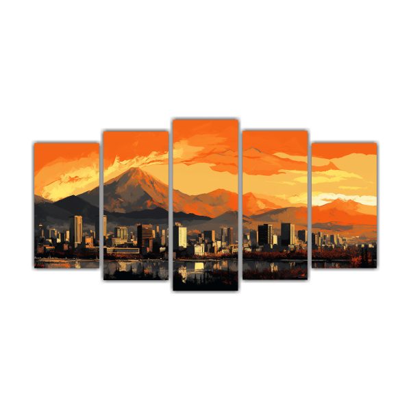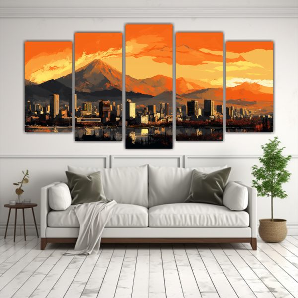 Renueva tu hogar con estos cinco lienzos de tela dibujo época a Santiago City in Chile in Orange AND Gold Colors Neo Envíos rápidos y gratuitos en Santiago ¡Decora con estilo!