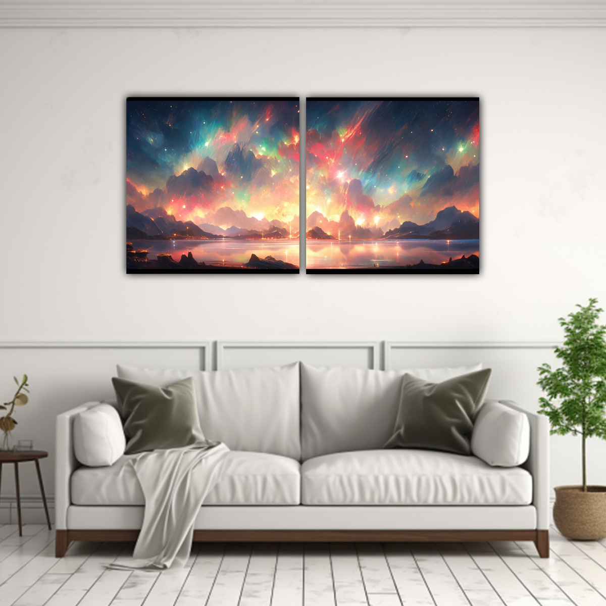 Pinturas En Lienzo Minimalistas: Aurora Boreal Con Arcoíris Y Colores Acuarela