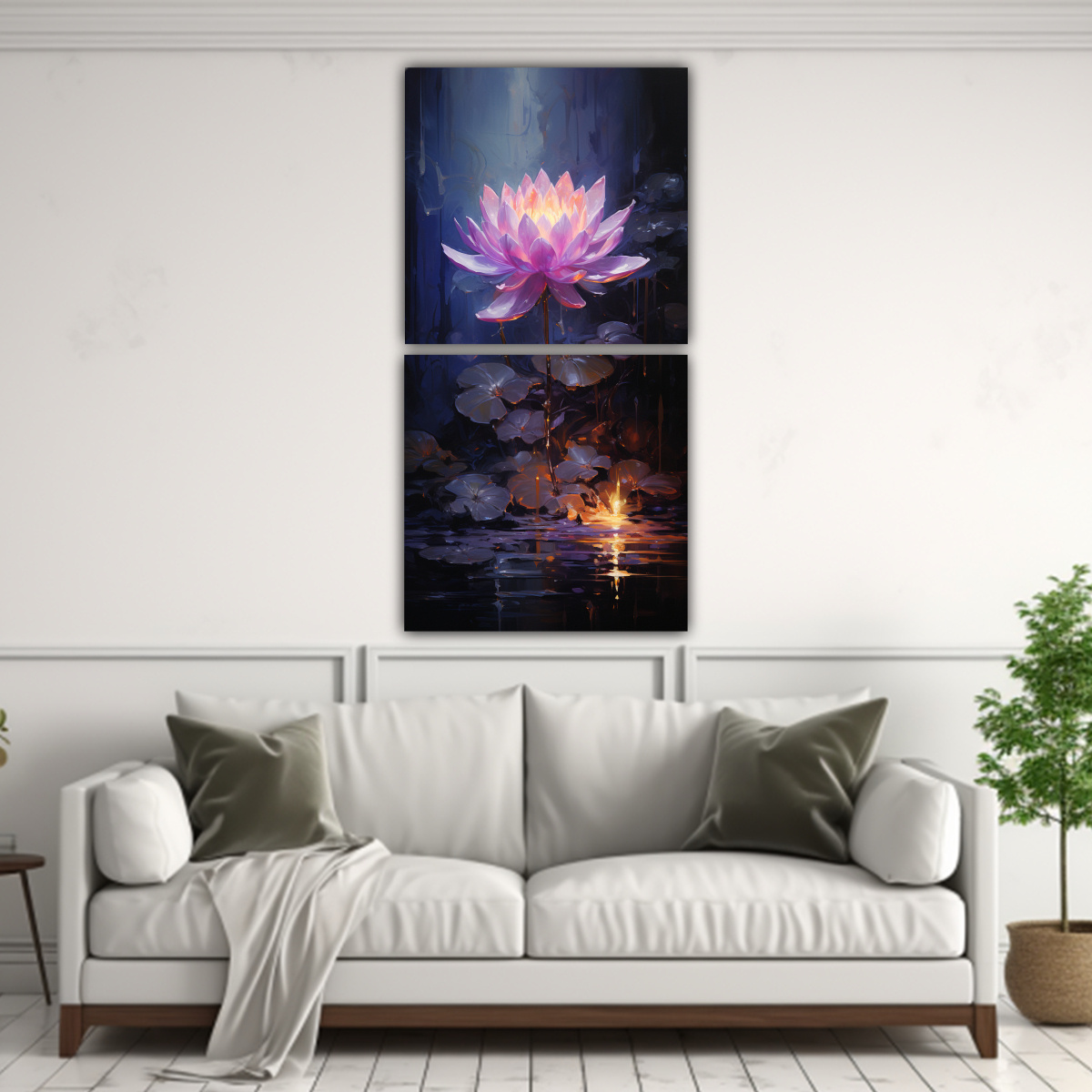 DecoCuadros ofrece el Set 2 Lienzos Calidos Belleza de un loto negro que brilla en la oscuridad en pinturas decorativas La mejor calidad y precios más económicos del mercado Envío exprés disponible