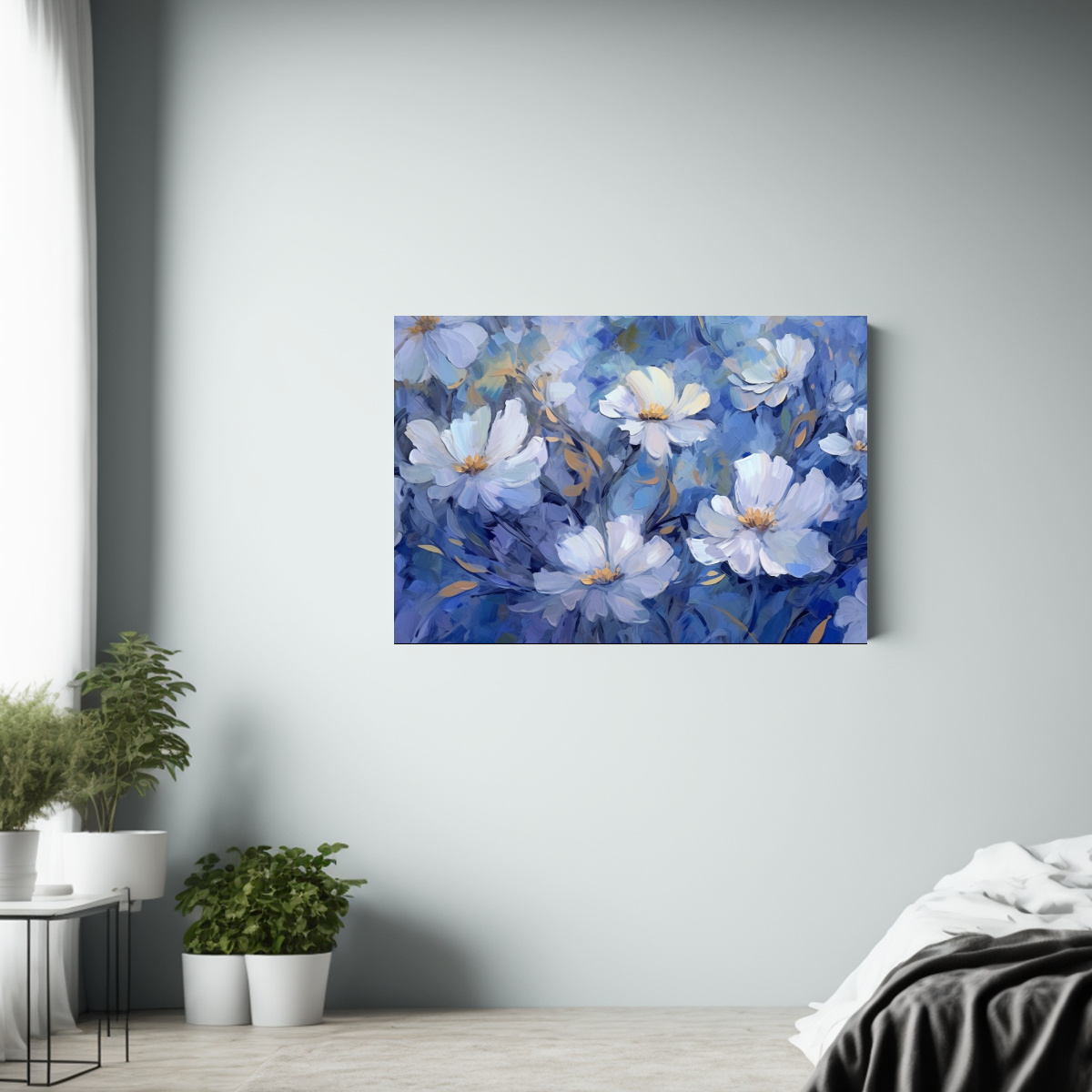 Coloca este cuadro floral en el salón de tu casa para crear un ambiente de serenidad y sofisticación Combínalo con muebles en tonos neutros para resaltar los colores vibrantes de la obra, agregando cojines en tonos Lila y Turquesa para lograr una armonía perfecta