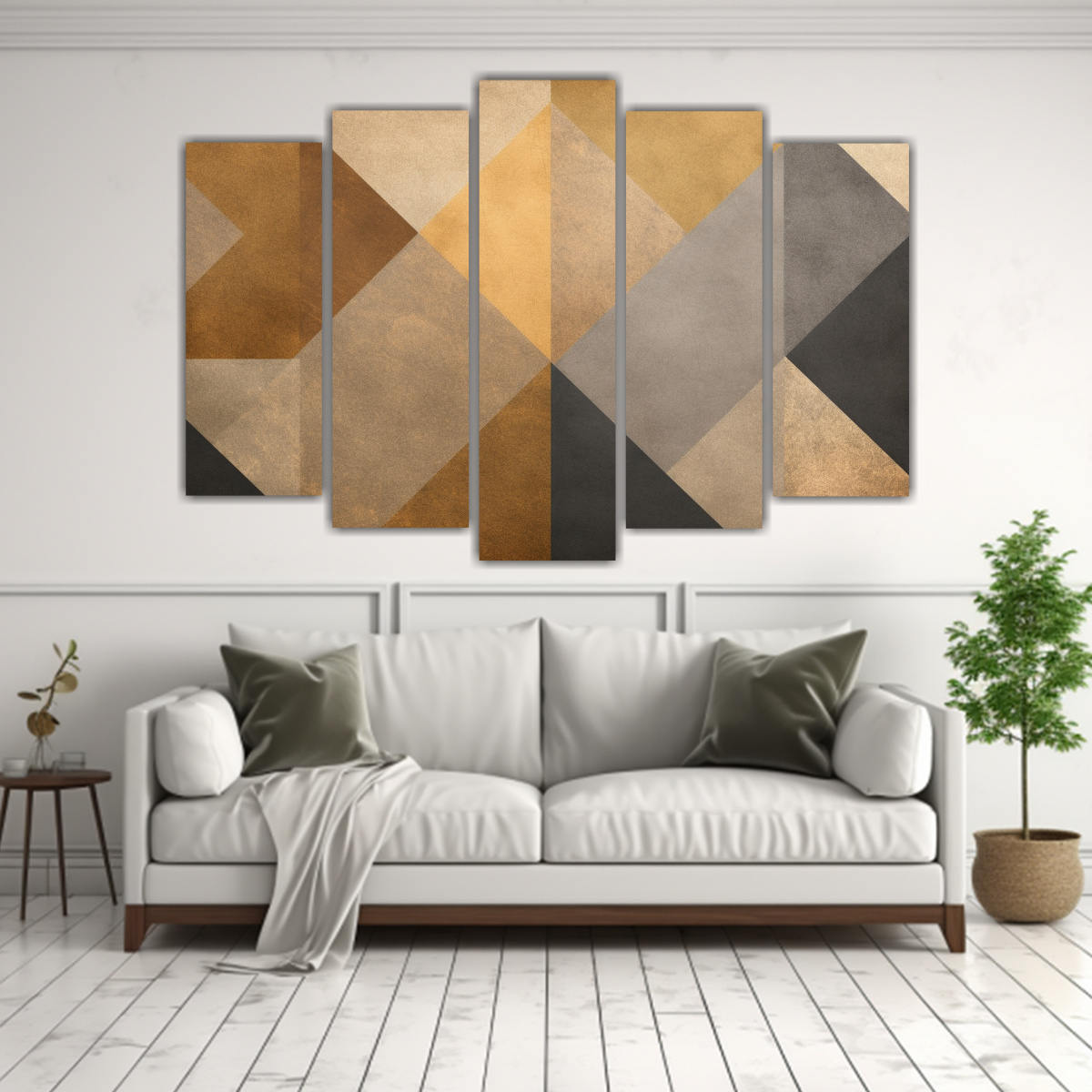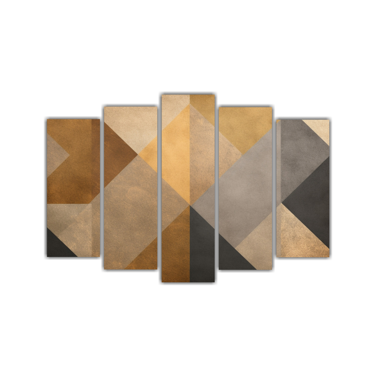Pinturas Geométricas En Oro Y Beige Para Decoración Brillante