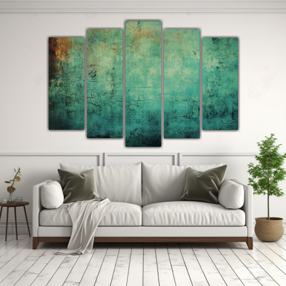 Pinturas Grunge Dinámicas Con Fondo Teal, Juego De 5 Alta Calidad.