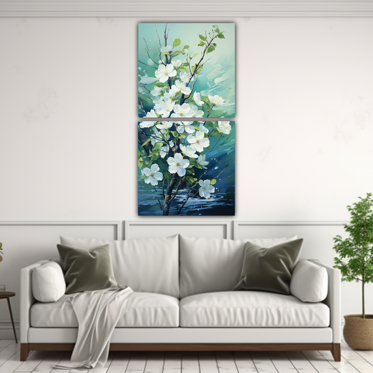 Este cuadro sería perfecto para colocar en la sala de estar, creando un punto focal en la pared principal Combínalo con muebles en tonos neutros y accesorios en colores menta y turquesa para lograr una decoración armoniosa y moderna