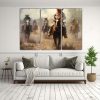 Pinturas Lienzo Estilo Callejero Moteros En Paisaje Del Oeste Polvoriento.