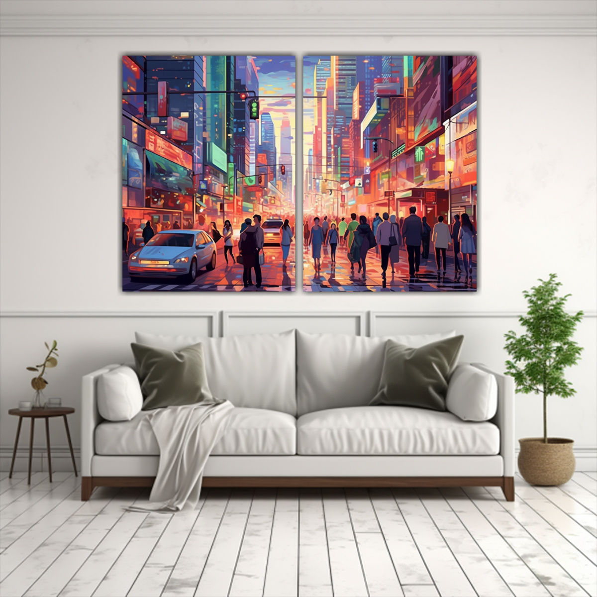 Llena tu hogar de expresividad con este cuadro en tela de alta calidad Adorna tus paredes con la mezcla de colores Coral, Azul Marino grisaceo, Gris, Plateado, Carmesí y Beige que reflejan la vida urbana Envíos rápidos y gratuitos en Santiago, y a regiones express en DecoCuadros